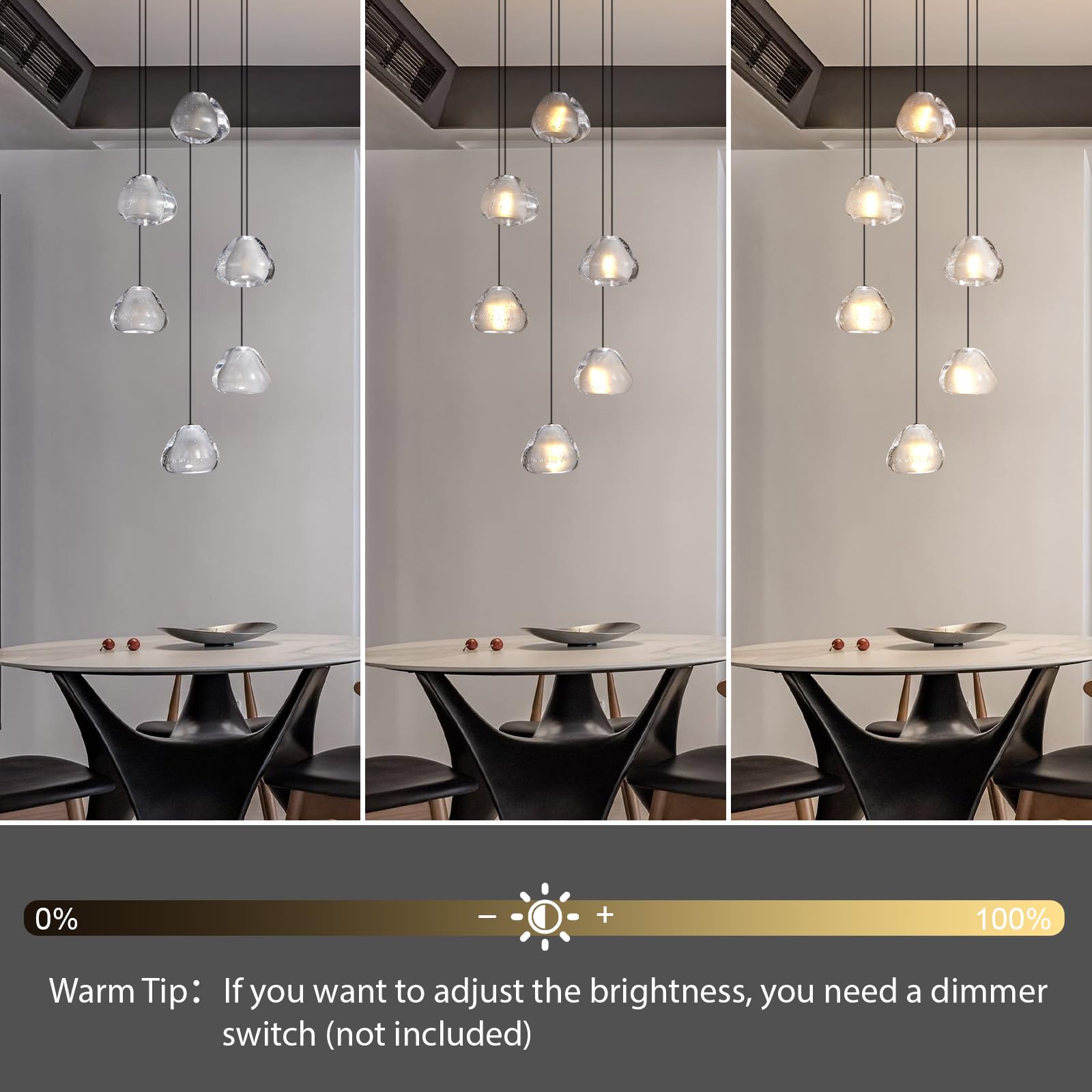 - 【6 Light Crystal Chandelier】 This modern chandelier features a unique crystal design paired with LED lighting, adding a stylish accent to any interior décor. The soft yet bright illumination is perfect for areas lacking natural sunlight, and its sparkling beauty becomes even more striking at night.