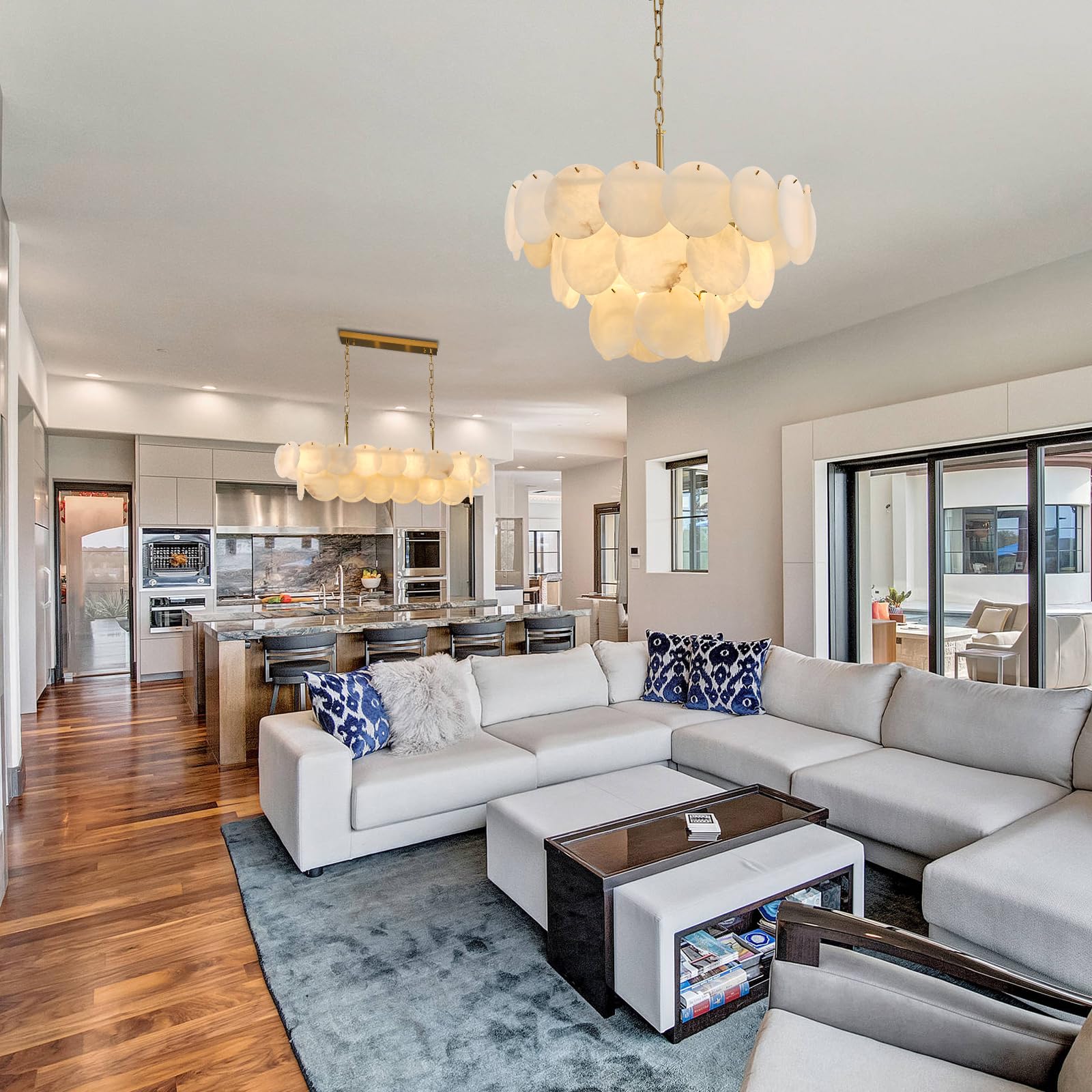 - 【Premium Heavy-Duty Build】This gold alabaster chandelier features thickened copper brackets and comes with pre-assembled hardware for durability and easy installation, and its artistic elegance elevates both residential and commercial spaces.