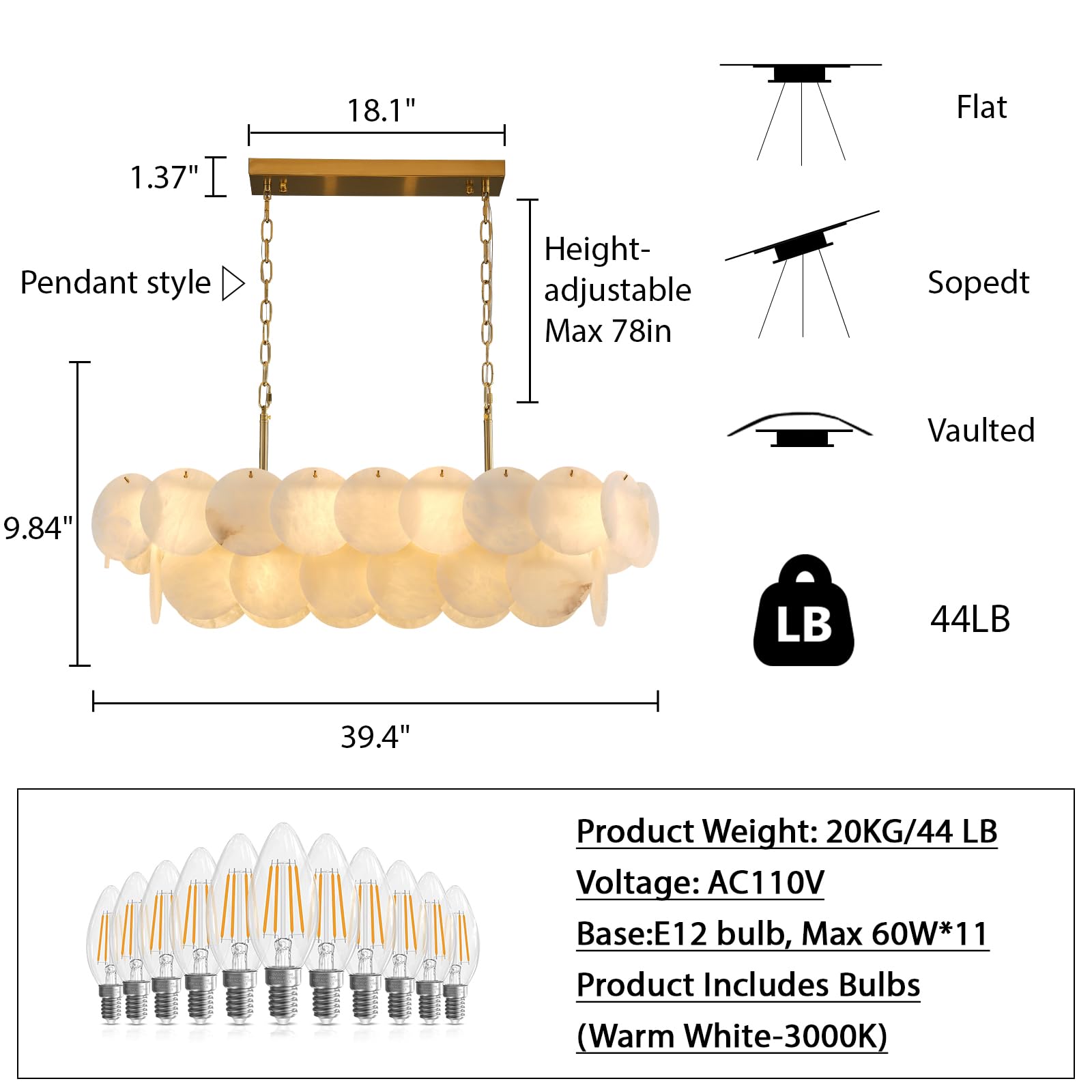 - 【Dimmable Ambient Lighting】Features 11 E12 bulbs (dimmer-compatible, not included) for adjustable brightness, allowing you to set the perfect mood—from bright task lighting to soft, romantic warmth.